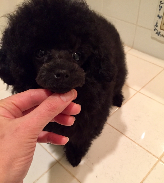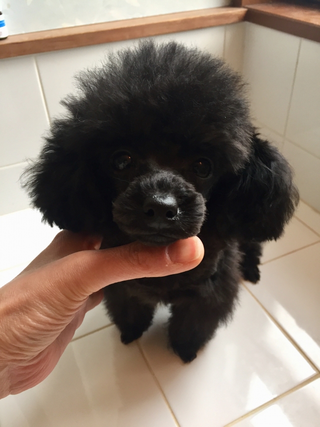 | コメント | 小さな男の子のご紹介です。 パパ1.6 シルバー ママ2.2 ホワイト の小ぶりな両親です。 将来はティーカップサイズを予想しております。 4ヶ月を迎え1.28キロ。小さいですが 骨格のしっかりしている子です。 弾力のあるもこもこで早くも巻いてきています。自慢の毛量も申し分ないので 将来できない髪型はないくらいです!! ベルベットのように艶のある真っ黒ですーー! とても元気な子でケージから出してあげるとちょこちょこちょこちょこ 歩き回る姿はとてもかわいらしいです♬ 小さなお子様のいらっしゃるご家庭でも元気いっぱい、家族の良き アイドルになれる事と思います! |