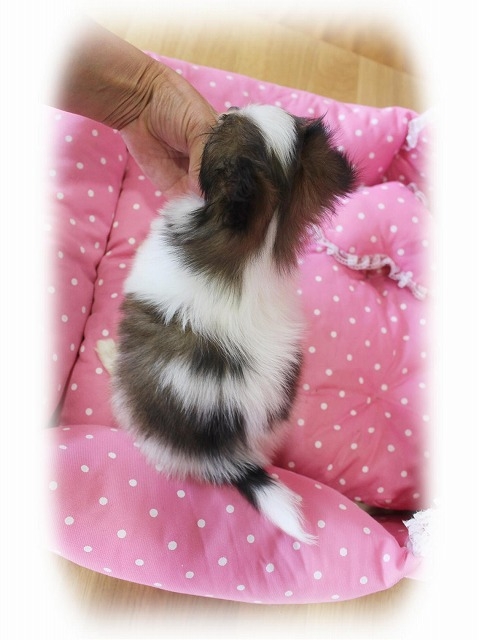 | コメント | パパ JKCチャンピオン アスカ君 とっても可愛いパパ 甘えたさんで明るく可愛いママ 素敵な両親から誕生したとっても可愛い男の子です★ とっても可愛い優しい目をした男の子♪ お顔の柄も左右対称! とてもきれいな美男子君です。 片方のお耳が撮影時 寝てしまいました(笑) 日により立ったり寝たりしていますが こうして綺麗に立っていきます。 特に立ち耳矯正はしておりませんが成長とともに綺麗に立つのでご安心ください^^ お耳が立てばもっと可愛くなること間違いなし!ですね♪ 明るい甘えん坊のボクにぜひ会いに来てあげてください。 欠点等ありません。 ★ 対面販売に伴い 遠方の方でご見学が難しい場合 ご相談ください。 ★ 通常 翌日までにご返信させていただきますが ドッグショー出陳 遠方へお届け等でご返信が遅くなることがございます。 急ぎでご返信希望の方はお問い合わせの際 その旨ご記入いただけますと 出来る限り早くご対応させていただきます。 |