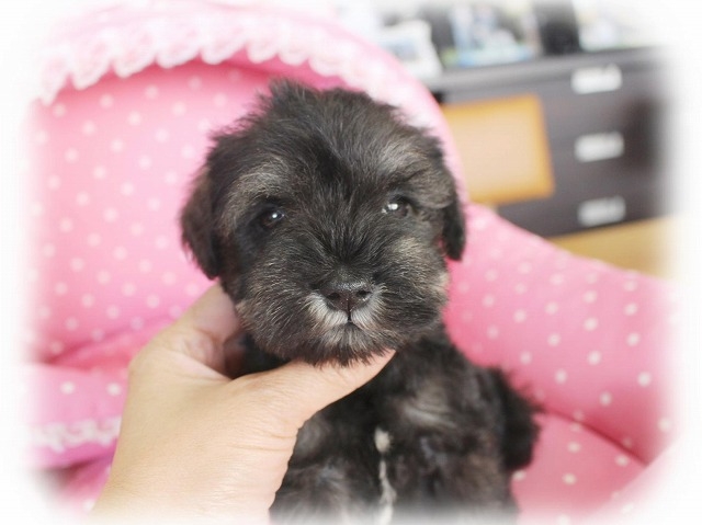シュナウザーを主力にされているブリーダーさんだと認識しており、ボスちゃんはどうかなあと正直不安でしたがとても可愛く健康的なボスちゃんをいただきました。 掲載されていた写真より実物は想像以上に可愛くて即決し見学させていただいたその日に連れて帰りました。連絡をして、翌日行きますぅって勝手な申し出にも関わらず敏速かつ親切に対応して頂き大満足です。契約に対しても一つ一つ丁寧に説明してくださり、わかりやすかったです。この度は可愛いボスちゃんとのご縁をいただき、本当に有り難うございました。 (大阪府 女性)