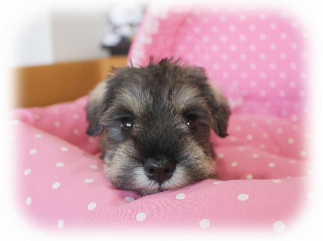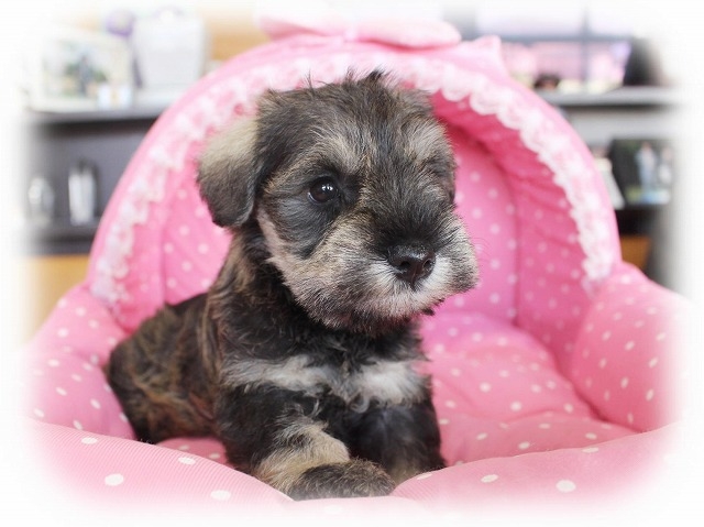 シュナウザーを主力にされているブリーダーさんだと認識しており、ボスちゃんはどうかなあと正直不安でしたがとても可愛く健康的なボスちゃんをいただきました。 掲載されていた写真より実物は想像以上に可愛くて即決し見学させていただいたその日に連れて帰りました。連絡をして、翌日行きますぅって勝手な申し出にも関わらず敏速かつ親切に対応して頂き大満足です。契約に対しても一つ一つ丁寧に説明してくださり、わかりやすかったです。この度は可愛いボスちゃんとのご縁をいただき、本当に有り難うございました。 (大阪府 女性)