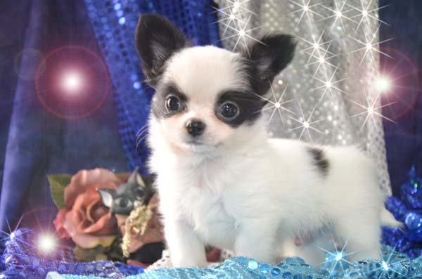 チワワ(ロング) ホワイト&ブラック(パーティ) ♂(男の子) 大阪府【 ブリーダーズ 】