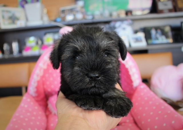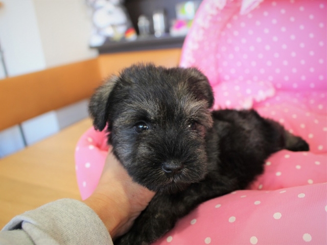 シュナウザーを主力にされているブリーダーさんだと認識しており、ボスちゃんはどうかなあと正直不安でしたがとても可愛く健康的なボスちゃんをいただきました。 掲載されていた写真より実物は想像以上に可愛くて即決し見学させていただいたその日に連れて帰りました。連絡をして、翌日行きますぅって勝手な申し出にも関わらず敏速かつ親切に対応して頂き大満足です。契約に対しても一つ一つ丁寧に説明してくださり、わかりやすかったです。この度は可愛いボスちゃんとのご縁をいただき、本当に有り難うございました。 (大阪府 女性)