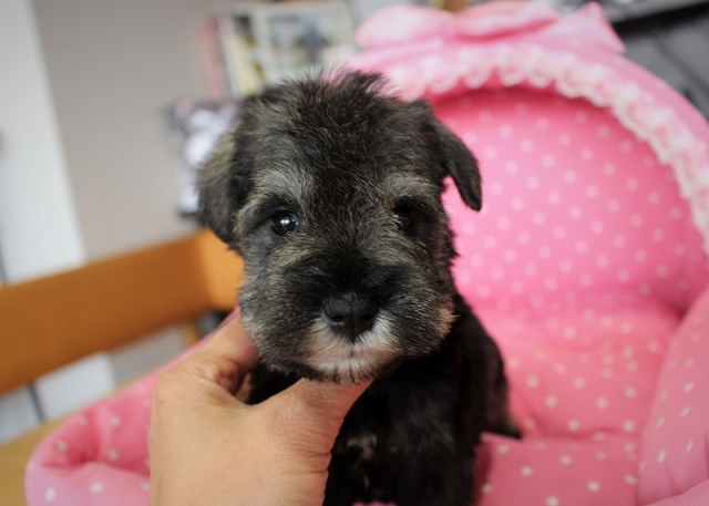 シュナウザーを主力にされているブリーダーさんだと認識しており、ボスちゃんはどうかなあと正直不安でしたがとても可愛く健康的なボスちゃんをいただきました。 掲載されていた写真より実物は想像以上に可愛くて即決し見学させていただいたその日に連れて帰りました。連絡をして、翌日行きますぅって勝手な申し出にも関わらず敏速かつ親切に対応して頂き大満足です。契約に対しても一つ一つ丁寧に説明してくださり、わかりやすかったです。この度は可愛いボスちゃんとのご縁をいただき、本当に有り難うございました。 (大阪府 女性)
