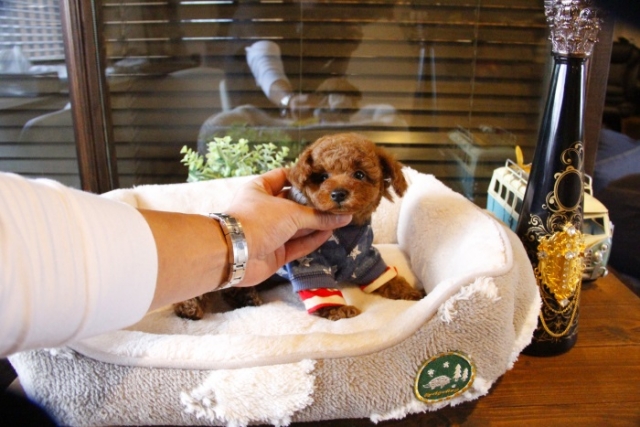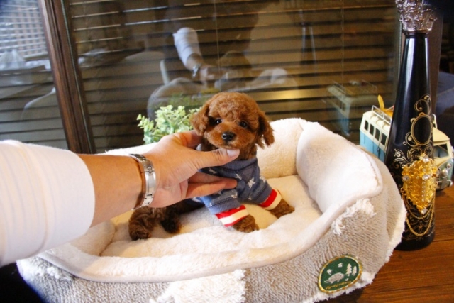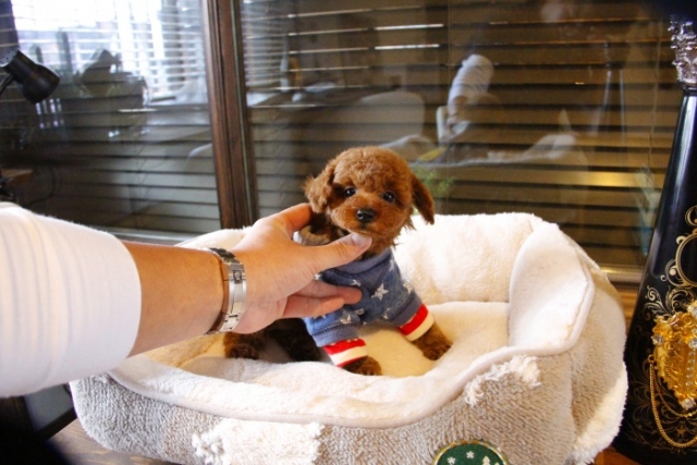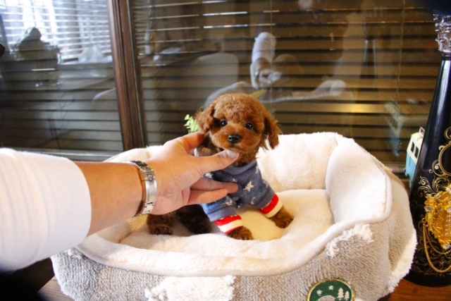 本日、我が家に小さな可愛い女の子のトイプードルがやって来ました。 遠距離という事もあり、暑い時期、飛行機の事なども心配していましだが、家に着いた途端、元気に走り、食欲も旺盛で、今まで大切に育てられてきたのだなぁ、ということがよくわかりました。 連休中にも関わらず、戸田様には、伊丹空港まで連れて来て頂き、こちらの質問にも的確に答えて下さいました。 大変信頼できるブリーダーです。 遠距離で悩まれている方も、安心して新しい家族を迎えられますよ。(兵庫県 男性)