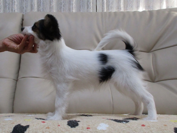 | コメント | 5頭兄妹の次女のご紹介です。 両親は共にチャンピオン直子です。 毛色はトライカラーの中のハウンドトライになります。 成犬時には頭部の黒い毛色が茶色に変わってきて お顔だけが白茶のパピヨンのようになります。 お耳もきれいに立ちました(^^) 美犬度もupしました♪ 大きなお耳がチャームポイントです! ワクチン接種済み 健康状態も問題ありません。 見学と同時にお引き渡しも可能です。 興味を持たれた方はお気軽にお問い合わせください。 |