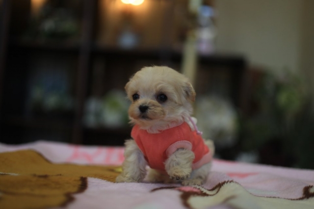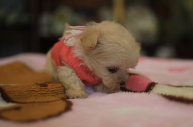 | コメント | 可愛いお顔のマルプーの女の子 新しいお家 募集中(*^-^*) 父 トイプードル(レッド)PRAノーマル 1.4kg 母 マルチーズ 2.5kg 性格はおとなしめで、ゆる~りとした癒し系♪ 激しい性質の子犬ちゃんではありませんので、ゆったりと落ち着いて飼育なさりたい方にオススメです。 健康診断(検便含む)各日、2名の獣医師の一般健診において合格した子だけお譲りしますのでご安心下さいね。 たいへん小さい子ですが、小さな兄弟姉妹の中で、まだ24時間お母さんと一緒の極小サイズです♪ 小さい子の特徴でお耳が浮いています。 将来の仕上がりサイズは、2kg以内で仕上がると思います。 標準的なプードルと違って、マルプーはマルチーズを片親に持っております関係で、四肢が短いので、実際の体重よりも随分と小さく見えると思います(^^♪ ご見学可能です(^^) この子は極小なのでごく短時間でお願いします。 こちらの都合に合わせていただける方や、日程の急な変更にご対応いただける方でお願いしますね。 ★午後1時~午後4時まででしたらだいたい毎日大丈夫です★ ★この子のお引渡しの目安は生後60日以降です。 離乳は他の兄弟姉妹に出遅れていますので、この子のペースに合わせて下さる急がない方でお願いします。 年内にはお渡し出来ます。 ★パピーに特化した当犬舎取り扱い健康保険に1年間ご加入いただける方でお願いします。 当日から使える特殊な保険ですので、インターネット上から加入が出来ない健康保険です。 ★早めの募集ですので、今後どんどんお顔が可愛く変身して参ります。 お気に入り登録していただいて、成長した姿を見ていただけると嬉しいです♪ ★ご予約を賜り次第 予告なく降板しますので、お早めにお問い合わせくださいね★ |