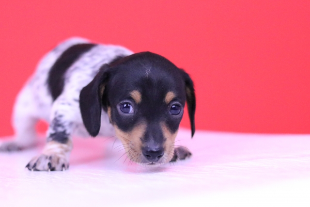ミニチュア・ダックスフンド(スムース) ブラックタンパイボールド ♀(女の子) 愛知県【 ブリーダーズ 】