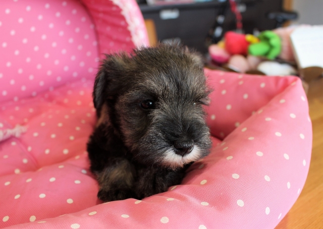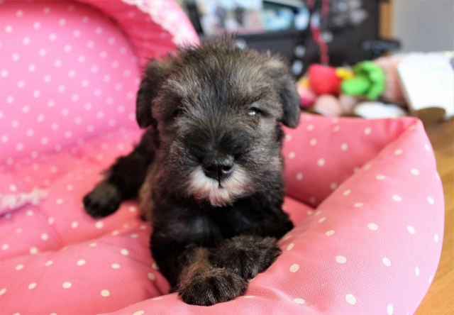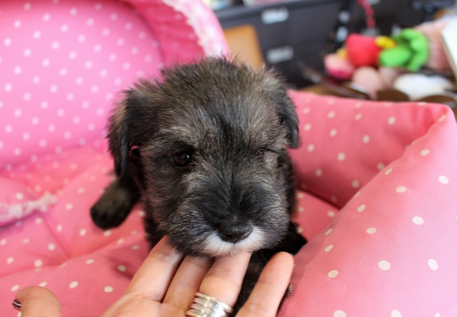 シュナウザーを主力にされているブリーダーさんだと認識しており、ボスちゃんはどうかなあと正直不安でしたがとても可愛く健康的なボスちゃんをいただきました。 掲載されていた写真より実物は想像以上に可愛くて即決し見学させていただいたその日に連れて帰りました。連絡をして、翌日行きますぅって勝手な申し出にも関わらず敏速かつ親切に対応して頂き大満足です。契約に対しても一つ一つ丁寧に説明してくださり、わかりやすかったです。この度は可愛いボスちゃんとのご縁をいただき、本当に有り難うございました。 (大阪府 女性)