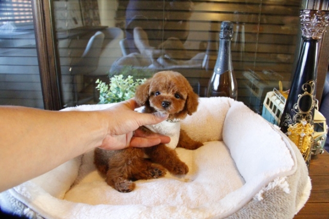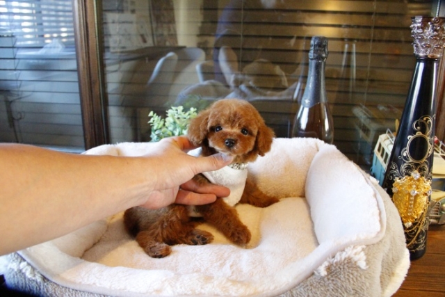 本日、我が家に小さな可愛い女の子のトイプードルがやって来ました。 遠距離という事もあり、暑い時期、飛行機の事なども心配していましだが、家に着いた途端、元気に走り、食欲も旺盛で、今まで大切に育てられてきたのだなぁ、ということがよくわかりました。 連休中にも関わらず、戸田様には、伊丹空港まで連れて来て頂き、こちらの質問にも的確に答えて下さいました。 大変信頼できるブリーダーです。 遠距離で悩まれている方も、安心して新しい家族を迎えられますよ。(兵庫県 男性)
