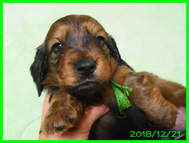 亡くなった愛犬達と同じ、 ワイヤーダックスの子犬を探していましたが、珍しい犬種という事もあり、 なかなか出会えませんでした。 諦めかけた頃、こちらのサイトで可愛い子犬を見つけ、思いきってメールをさせて頂きました。 遠藤ブリーダー様の迅速丁寧な対応で、 お陰様で無事に子犬を迎える事が出来ました。 本当にありがとうございました。 ブリーダーズ様にも感謝致します。 (北海道 女性)
