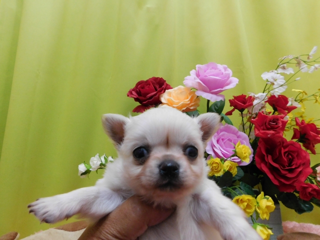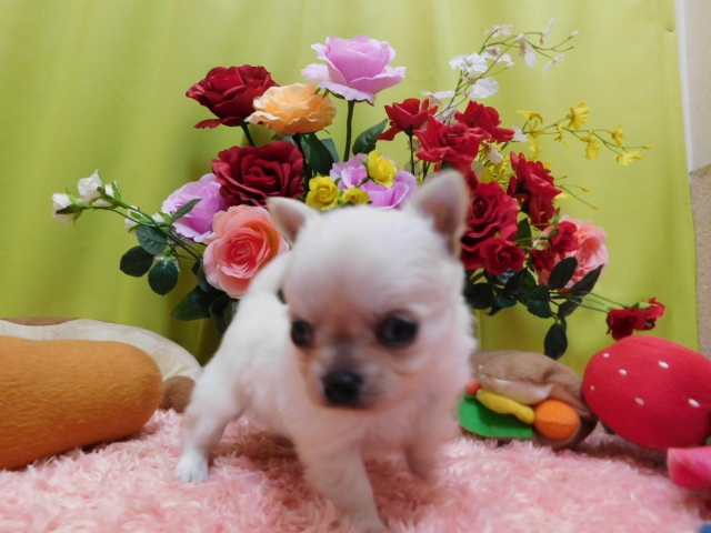 5月6日に13年1ヶ月買ったチワワが亡くなり、49日が過ぎてネットで前のチワワと面影が似ていたので見学させて頂きましたところ親切に説明していただき、とても元気な子を分けていただきました。(大阪府 男性)