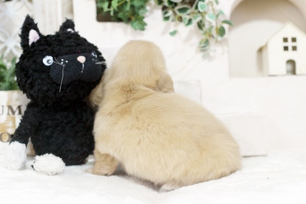 | コメント | ご覧頂きまして、有難うございます。 皆様に喜んで頂けますように、日々努力を重ねております。 健康状態 とても元気です。(*^▽^*)順調に成長しています。 子犬ちゃんの特徴 体重 722g (12/27現在) パパ クリーム 3.3㎏ ママ クリーム 3㎏ 血統書 すべてのわんちゃんに国内血統書は付いていて お渡し後に郵送となります。 パパ・ママわんちゃん達の特徴 見た目もさることながら、性格も重視しております。 気性の荒い子は繁殖に適さないと考えていますので、パパ・ママわんちゃん達は穏やかです。 お問い合わせ・予約について 一時お預かり金を先に入金された方が優先されますので、問い合わせが早くても決まる場合があります。 見学予約を頂いた場合でも、見学予約日前に決まる場合もありますので、ご了承下さい。 その際は事前にお知らせいたします。 遠方の方について 2013年9月から動物愛護法の改正により対面販売が義務ずけられました。 こちらに来られてのご契約をお願いしたい所ですが、ご事情が許さない場合が多々あります。 地域の代行業者様に仲介して頂き販売する事は可能でありますので、ご相談下さい。 その際代行手数料は発生いたします。 伊丹空港・・・10800円 羽田空港・・・16800円 セントレア空港・・・16800円 その他に地域も対応可能です。 空港貨物の場所で対面して気に入らない場合はキャンセルもできます。その際はお預かり金は全額返金されますが 往復の送料、代行手数料全額はお客様ご負担となりますので、ご注意下さい。 お客様、わんちゃんにも負担がかかりますので、動画・画像でよく確認されて決めてください。 お迎えの時期 1回目のワクチン・健康診断をすませ、しっかり食事をとれる状態でお渡しとなります。 生後55日前後を予定しておりますが、健康状態・大きさ等により延期する場合もありますので、ご了承下さい。 ワクチン代 5種 5 000円 健康診断書をご希望の場合 別途 2000円 プレゼント お持ち帰りの際のバスケットかご 空輸の場合はそのままお持ち帰りできます。 *土日祝日は見学などの対応で多忙な為、お問い合わせへのメール返信が週明けになってしまう事も ございますのでご了承下さいませ。 |
