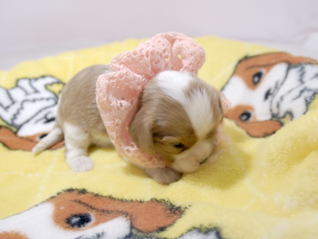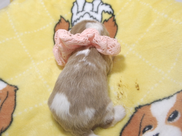 | コメント | お父さんはJKCチャンピオンの家斉君、お母さんはチャンピオン直子ヒンギスちゃんから生まれたダンディな男の子です。(桃リボン君) 健康状態は、問題有りません。 すくすく育っています。 現在体重520g |