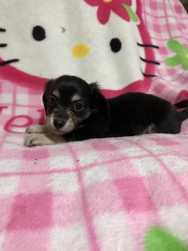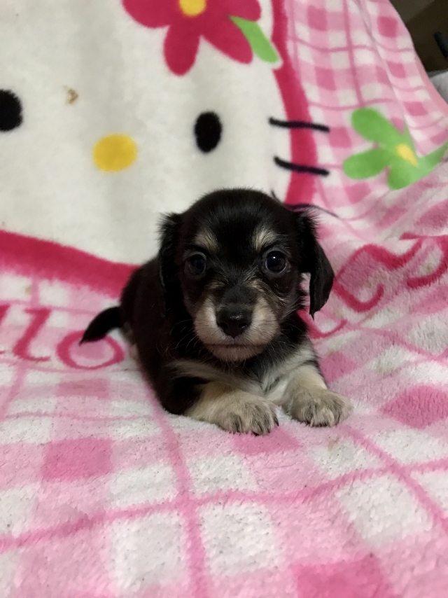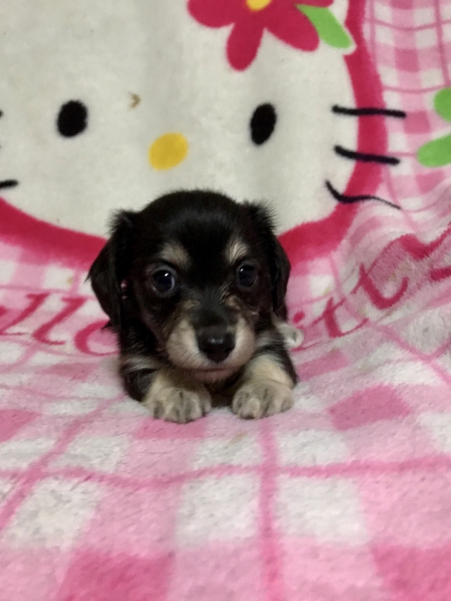 | コメント | お母さんがチワックスです。 3匹兄妹の1匹で、ブラッククリームの女の子です。 とっても、元気なこです。 毎日、兄妹と遊んで居ます。 末長く、宜しくお願いします |
