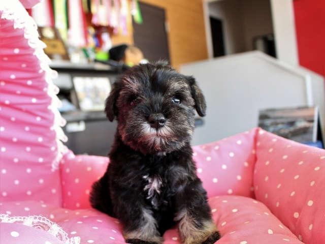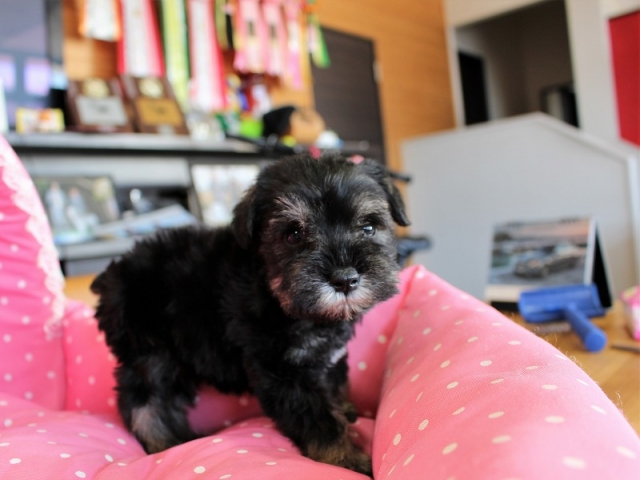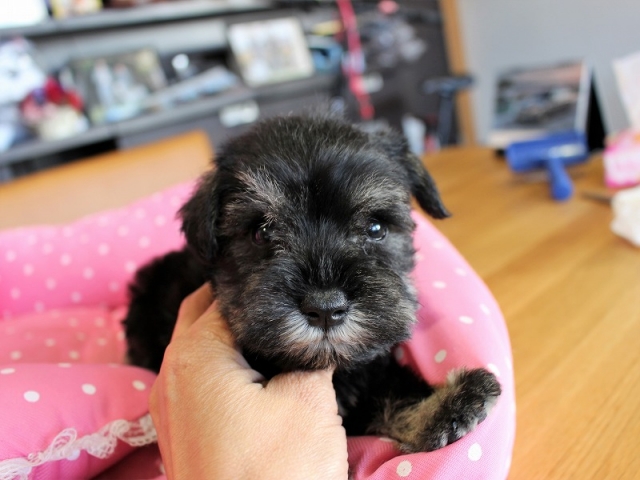 シュナウザーを主力にされているブリーダーさんだと認識しており、ボスちゃんはどうかなあと正直不安でしたがとても可愛く健康的なボスちゃんをいただきました。 掲載されていた写真より実物は想像以上に可愛くて即決し見学させていただいたその日に連れて帰りました。連絡をして、翌日行きますぅって勝手な申し出にも関わらず敏速かつ親切に対応して頂き大満足です。契約に対しても一つ一つ丁寧に説明してくださり、わかりやすかったです。この度は可愛いボスちゃんとのご縁をいただき、本当に有り難うございました。 (大阪府 女性)