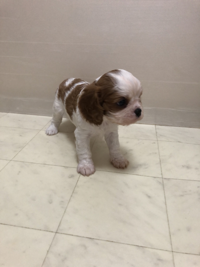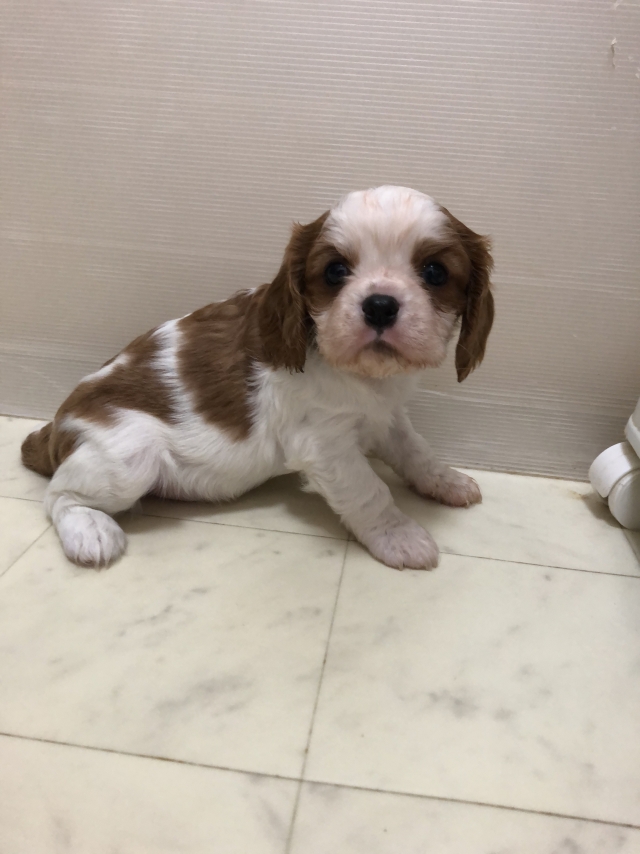 | コメント | とっても可愛い男の子です♡ 女の子のような甘いお顔でとってもキュート。 お鼻も短くお目々も黒々な真ん丸どんぐりお目々です。 また柄の入り方も大変良く、茶色の濃さもしっかりと濃く、毛量も豊富ですので将来はゴージャスな雰囲気になると思います。 両親共に英国系の血統になります。 キャバリアは目頭に白目が出る子が多い印象ですが、我が家のキャバリアは白目が出ません。 またお口周りにシミや成長過程でソバカスが出る子も多いですが、大人になってもキレイな口元です。 先祖代々白目やシミソバカスのある遺伝子は排除してブリーディングしています。 またキャバリアは元々大変大人しい犬種ですが、その反面ビビリさんが多いので性格にもこだわり、明るくて人懐こい子に育つように母犬や教育係の犬達と共にベビー達としっかりと関わって育てております。 お引渡しまでに色々なことを体験しながら、新しいお家に行ってからもベビーが困らないように過ごしております。 現在離乳食にも興味を持ち始め食べてくれています。 もちろんママの母乳はしっかり飲んで育っております。 当方のブログやInstagramにはたくさん画像や動画を掲載しています。 こちらに動画を載せられるようですが、載せ方がわからず掲載出来ず申し訳ありません。 毎日とても元気に過ごしております。 お引渡しは1月下旬ごろを予定しております。 当方は遠方からのお客様が大変多くゆっくりとご見学いただきたい為、お客様は1日一件のみとさせていただいております。 週末をご希望の方が圧倒的に多い為、週末のご見学を希望の方はお早めにご予約ください。 生涯家族の一員として可愛がってくださる方とご縁があると嬉しいです。 |