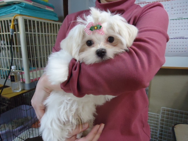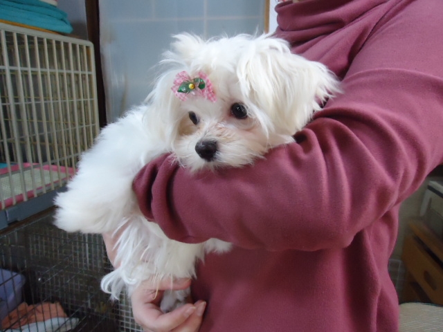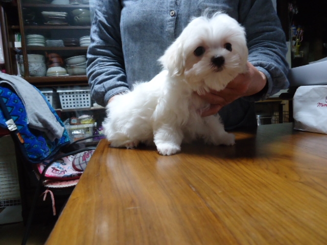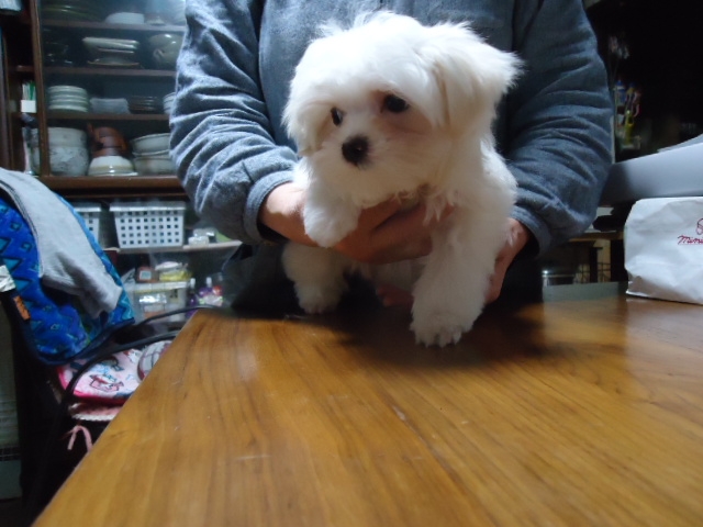 この度ご縁がありまして村島ブリーダーさんから可愛いマルチーズの男の子を譲って頂きました。犬を飼うことは初めてだったのですが2度ほど見学し、アドバイスも頂き、安心して子犬を迎えることができました。何かあれば電話でいつでも相談にのって下さるとのことで心強いです。子犬もとても元気でおトイレもすぐに覚えてとってもいい子です。ありがとうございました。(栃木県 女性)