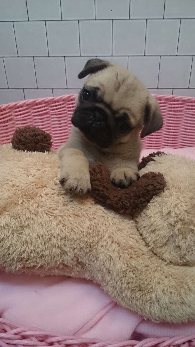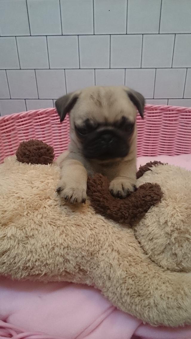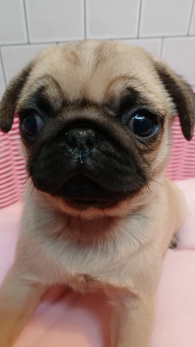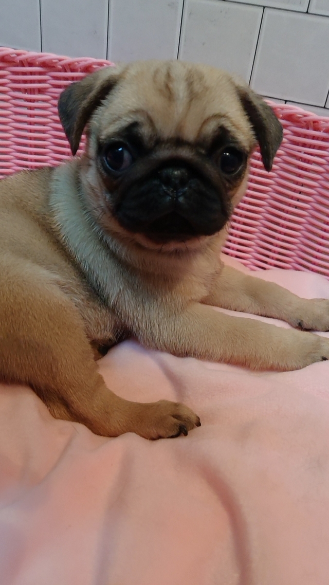 | コメント | お父さんフォーンのイケメン君。しかも遺伝子検査クリアーです。 お母さんもフォーンのお母さん。こぶりのお母さん。 可愛い赤ちゃんでしょ⁉ 皆様からのお問い合わせ、ご見学お待ちしています。 パグちゃんの愛くるしい動作に癒されてくださいね |