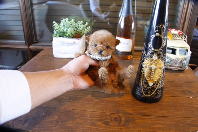 | コメント | 父1.5㎏ 母1.8㎏ 1/11現在213グラム 都内で販売されれば確実に2倍の値段です ティーサイズ確定のレッドの女の子 小顔にマズルは短くとても小さい子です 色素も真っ黒で毛量もありとても大人しいかわいい子です まだ小さいので人間の赤ちゃんと一緒でペコがあります PRAは発症しません 欧米のブリーディング同様、親や兄弟と社会期を過ごさせることで 人間と暮らした時にスムーズに暮らせるようにしております。 親犬達も家族として朝7時からドックランで遊び、全室冷暖房完備の部屋で過ごし、専門のスタッフや専門学校の方々と協力し合いながら 衛生管理に努めております。 犬舎の特徴としましては、東京や神奈川近郊の為マンションのお客様が8割を占めます。その為小さな1キロから2.8キロまでに収まるように、 母犬を2.8キロまでと決めてブリーディングをしている為、後で極端に大きくなる子はいません。 瞳の丸く大きなところやマズル(鼻先)が短いもの特徴で、父犬、母犬、全て私が全国の可愛いトイプードルを一頭、一頭厳選して親犬としてブリーディングした子犬のみを掲載しております。 こだわりとしては、お客様がお迎えされた後、その子がTV出演、雑誌やカレンダーのモデルとして活躍の場が増え我が家を忘れないでいてもらいたい為、 本気でこだわりを持って常にトイプードルを飼うなら此処だと皆様全員に思われる犬舎でありたいと思います。 ありがたいことに今では、雑誌やTV出演、カレンダーなど多くの出身トイプードルちゃんたちが可愛く撮影されお客様からも喜びの声を頂いております |
