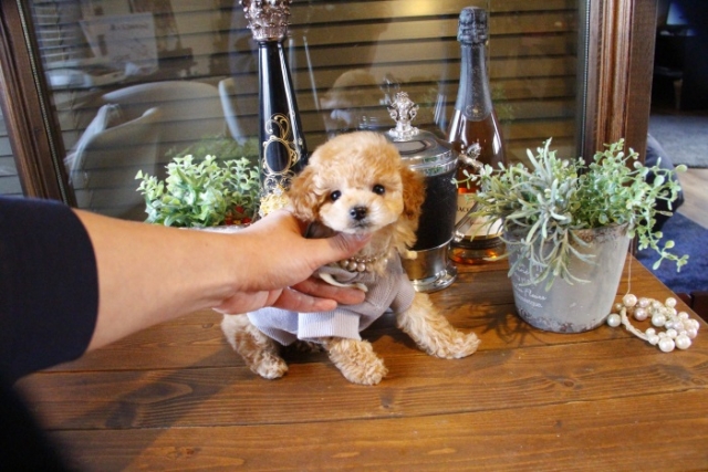 | コメント | 父1.5㎏ 母2.6㎏ タイニーサイズ予想 見学当日お迎え可能 PRAクリアー 上質な細かい毛質に覆われて明るめアプリコットの仕上がりです 性格も元気に遊ぶというよりは品がありゆっくり遊ぶ といった感じの性格です 欧米のブリーディング同様、親や兄弟と社会期を過ごさせることで 人間と暮らした時にスムーズに暮らせるようにしております。 親犬達も家族として朝7時からドックランで遊び、全室冷暖房完備の部屋で過ごし、専門のスタッフや専門学校の方々と協力し合いながら 衛生管理に努めております。 犬舎の特徴としましては、東京や神奈川近郊の為マンションのお客様が8割を占めます。その為小さな1キロから2.8キロまでに収まるように、 母犬を2.8キロまでと決めてブリーディングをしている為、後で極端に大きくなる子はいません。 瞳の丸く大きなところやマズル(鼻先)が短いもの特徴で、父犬、母犬、全て私が全国の可愛いトイプードルを一頭、一頭厳選して親犬としてブリーディングした子犬のみを掲載しております。 こだわりとしては、お客様がお迎えされた後、その子がTV出演、雑誌やカレンダーのモデルとして活躍の場が増え我が家を忘れないでいてもらいたい為、 本気でこだわりを持って常にトイプードルを飼うなら此処だと皆様全員に思われる犬舎でありたいと思います。 ありがたいことに今では、雑誌やTV出演、カレンダーなど多くの出身トイプードルちゃんたちが可愛く撮影されお客様からも喜びの声を頂いております |