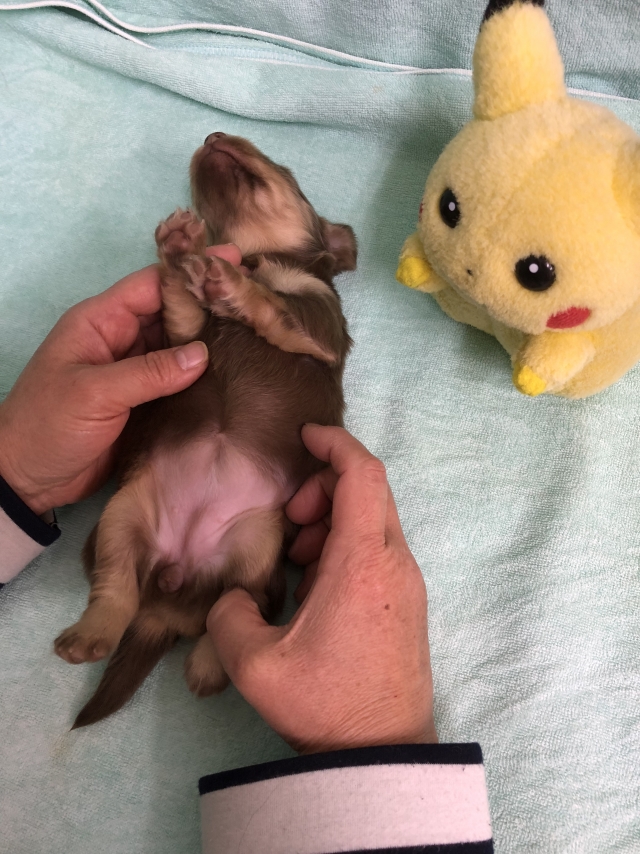 | コメント | 父 4.1キロ チョコタン 母 3.7キロ ブラックタン 遺伝子検査 1.骨異形成症 2.神経セロイドリポフスチン症(CL) 3.進行性網膜委縮症(PRA) 父・母3種類クリア |