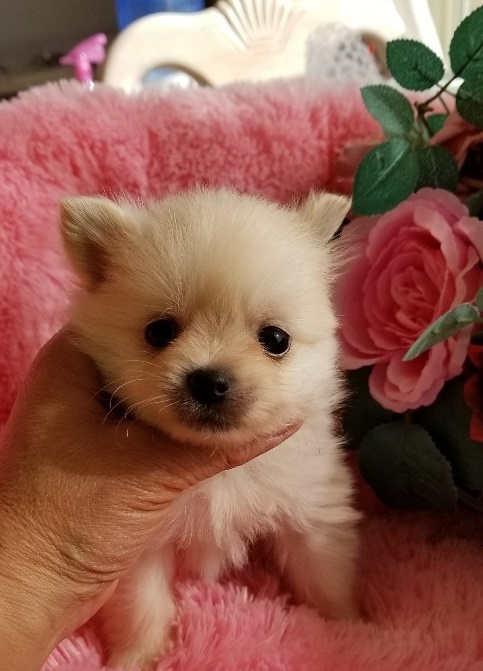 白のポメラニアンを本日お迎え致しました。生後40日前後で子犬を拝見させて頂いた時にブリーダー様の犬愛を知り、迎えるまでの20日間、安心して過ごせました! 途中で、ムービを送って頂き、成長過程を実感できた事、感謝しています。アドバイスも、丁寧に教えて頂きました。(東京都 男性)