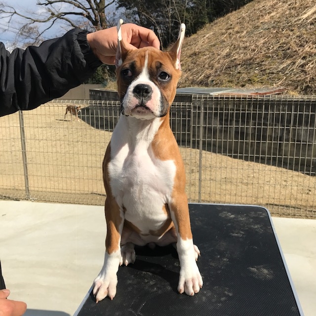 | コメント | ご覧いただきありがとうございます。 優良血統のボクサー産まれました。 父犬・JKCチャンピオン フォーン&ホワイトマーキング 母犬・JKCチャンピオン フォーン&ホワイトマーキング 素晴らしい血筋の子です。断尾・狼爪切除済み とても優しいお母さんの愛情をたっぷり受けてスクスクと育っています。 元気で可愛い子です。ボクサーは主人に忠実な良きパートナーになってくれると 思います。 見学大歓迎ですので是非会いに来てくださいね! |