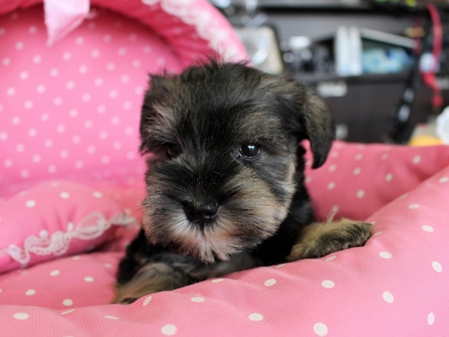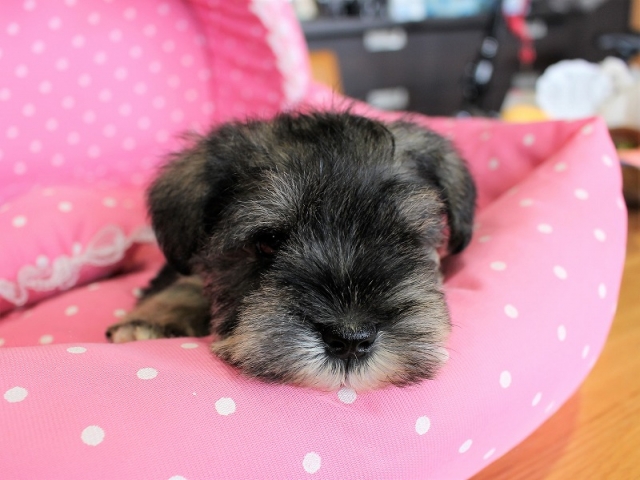 シュナウザーを主力にされているブリーダーさんだと認識しており、ボスちゃんはどうかなあと正直不安でしたがとても可愛く健康的なボスちゃんをいただきました。 掲載されていた写真より実物は想像以上に可愛くて即決し見学させていただいたその日に連れて帰りました。連絡をして、翌日行きますぅって勝手な申し出にも関わらず敏速かつ親切に対応して頂き大満足です。契約に対しても一つ一つ丁寧に説明してくださり、わかりやすかったです。この度は可愛いボスちゃんとのご縁をいただき、本当に有り難うございました。 (大阪府 女性)