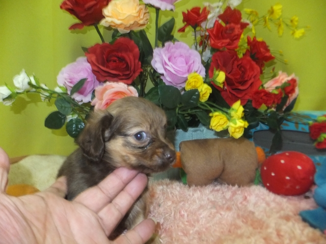 | コメント | 【紹介文】 12月9日産まれの元気な男の子です♪ 現在は毎日母犬と兄妹戯れて遊んでおります(>☆<) ☆両親☆ 父親ーチョコタン(Kダックス) 母親- ブラックタン(チワワ) ☆成約して頂いたお客様☆ 引き渡し日⇒1月28日前後より可能(生後50日前後) ワクチン1回目⇒引き渡し日前日迄に接種予定 当犬舎で成約して頂きましたお客様には下記の品(全て新品)をサービスさせて頂きます。 ※引渡し方法により多少異なる エサ(2~3㌔) エサ入れ 水飲み スリッカー&くし ←毛の生え変わり時やシャンプー後に使用 移動用ゲージ ←引渡し時に使用 ペットシーツ ←手渡しでの引き渡しのみ 上記品をサービスさせて頂きますのですぐに仔犬を迎え入れる事が可能です♪ ※飼育に当たって他に必要なのはサークルのみとなります。 ※成約される方は出来る限り当店まで来て両親、子共実際に触れ合って 頂いてからの成約を希望します。 ※成約後のお引渡し方法は、仔犬の事を考慮したうえで可能な限り手渡しを希望します。 ※問い合わせ頂ける際は可能な限り日中ご連絡ができる連絡先(携帯等)をご明記お願いします。 ☆★☆★☆★☆★☆★☆★☆★☆★☆★☆★☆★☆★☆★☆★☆★☆ |
