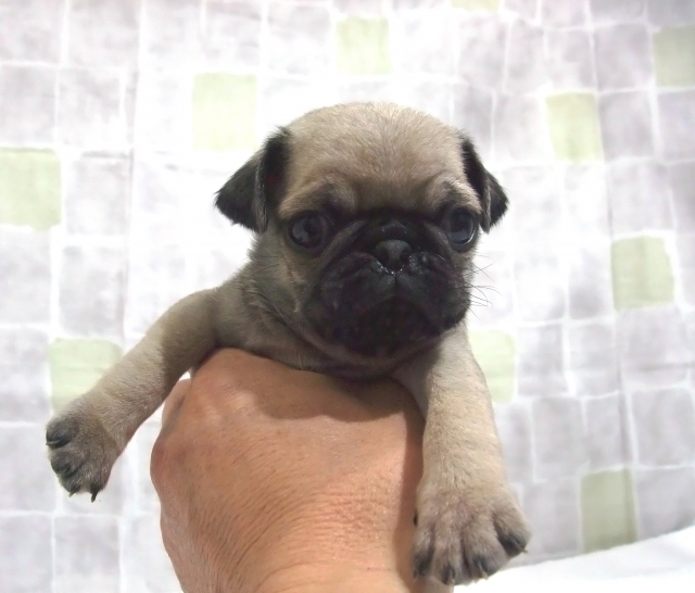 このサイトからパグを見つけ、写真を見た瞬間「この子だ」と思い すぐブリーダーさんに連絡し、訪問面会となりました。 この子が気に入ったのはもちろんですが、とても清潔きれいにされていた環境で生まれ、ブリーダーである小林様の人柄ももちろん、色々親切丁寧に教えていただき非常に安心出来ると思い購入を決めました。購入後も定期的にメールいただき近況をお知らせしております。 そして、何かあれば気軽にお問い合わせくださいとも言っていただき 何かあれば相談にのっていただこうと思っております。 どのような環境で生まれ、両親も確認できるのはブリーダーさんから直購入のいいところだと思います。 ペットショップで購入しなくて良かったと思います。 小林様 本当にありがとうございました。 (東京都 男性)