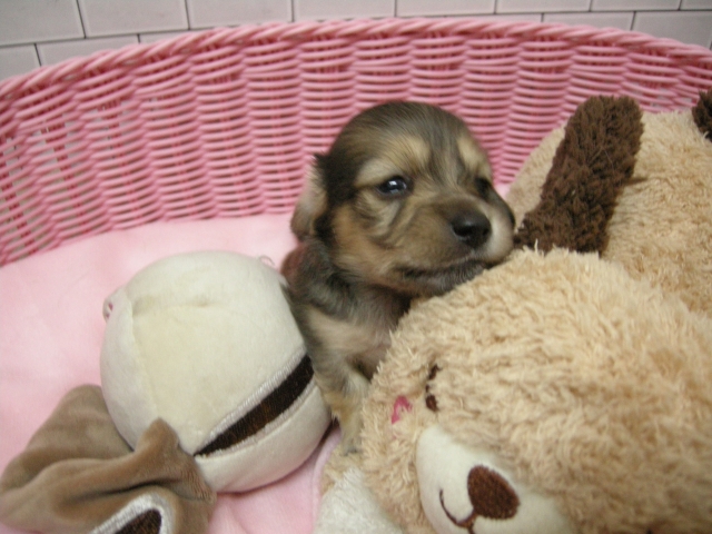 | コメント | お父さんPRAクリアーのオチビ君!イケメンで小さなお父さんです! お母さん可愛い極オチビのお母さん!!当店で一番小さなカニヘンダックスフンドです! 今まで見たことない小さなカニヘンのお母さんを見学に来てくださいね |
