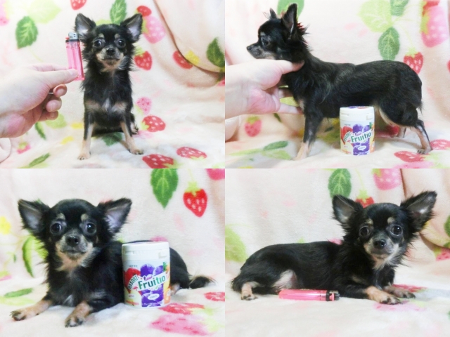 | コメント | ☆超極小確定!!お目々クリクリ!!☆お顔小っちゃい可愛い女の仔♪ 毛量も多くホントに綺麗な色素の濃いブラック&クリームですよ^^ 動き回る姿がとっても愛らしい☆愛嬌たっぷりちょこちょこ最高!! 小さくてもとっても元気!!同サイズの仔たちと仲良く遊んでます♪ 人や子供の手にも充分に慣れていて懐っこいフレンドリーな仔です^^ 生後10ヵ月の体重は約1.3kg!!成犬予想体重1.3㎏確定だと思います!! 無理に小さく育てた極小とは違ってとっても元気な健康優良児♪ 身体のバランスが良くしっかりした硬い胴で骨量多い丈夫な仔☆ 現状噛合せや骨格・関節形成など問題無く欠点の心配はありません!! 離乳も済み食欲旺盛でドライでカリカリ!!いつでもお引き渡しOK♪ ホントに本当の極小チワワちゃんに是非逢いに来てください☆ 素敵なご家族様からのお問い合わせをお待ちしております^^ 【その他諸費用】 5種ワクチン接種費用:6千円【税・画像入証明書付・健康診断込】 ※お迎えの場合で【生体代金】+【ワクチン接種費用】のみです。 ●血統書登録団体:JKC(到着次第郵送※3ヵ月以上要する事もあります) |