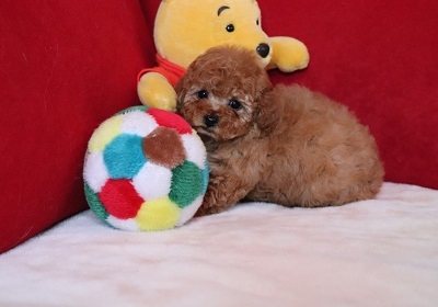とっても可愛いトイプートルの女の子を譲って頂きました。モコと名前を付けて家族皆で可愛がってます。トイレはしつけ途中とおっしゃっていましたが、ちゃんとトイレまでトコトコ歩いていってした時はビックリしてキチンとしつけをしてくださっていたんだなぁと感激しちゃいました。性格も明るく元気で、先に飼っていたトイプーのお兄ちゃんとも仲良くやれそうです。モコの方が元気で時々お兄ちゃんは逃げ腰になってますけど。(^^;; 本当にこの度はありがとうございました。大切に育てますね。(鹿児島県 女性)