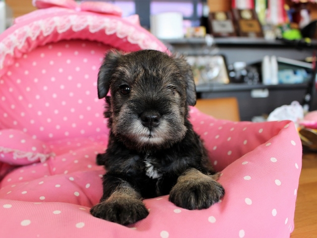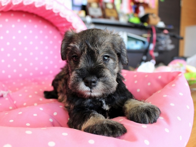 シュナウザーを主力にされているブリーダーさんだと認識しており、ボスちゃんはどうかなあと正直不安でしたがとても可愛く健康的なボスちゃんをいただきました。 掲載されていた写真より実物は想像以上に可愛くて即決し見学させていただいたその日に連れて帰りました。連絡をして、翌日行きますぅって勝手な申し出にも関わらず敏速かつ親切に対応して頂き大満足です。契約に対しても一つ一つ丁寧に説明してくださり、わかりやすかったです。この度は可愛いボスちゃんとのご縁をいただき、本当に有り難うございました。 (大阪府 女性)