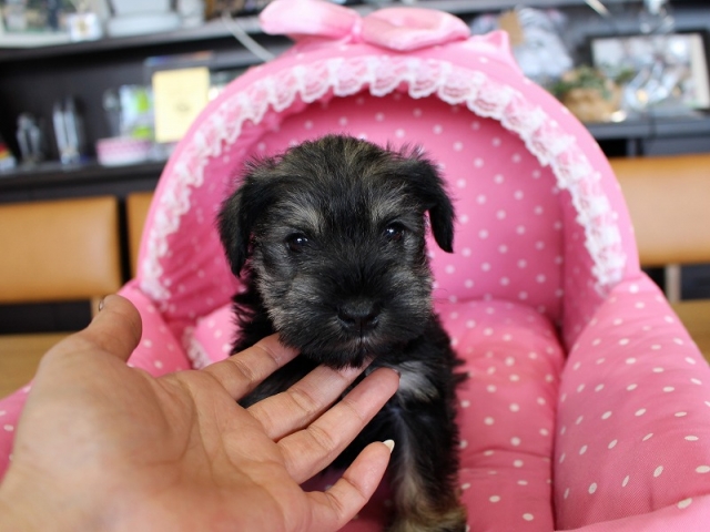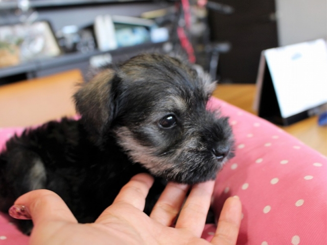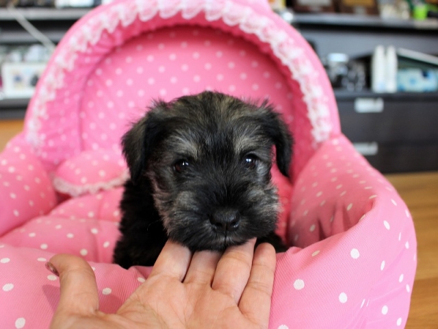 シュナウザーを主力にされているブリーダーさんだと認識しており、ボスちゃんはどうかなあと正直不安でしたがとても可愛く健康的なボスちゃんをいただきました。 掲載されていた写真より実物は想像以上に可愛くて即決し見学させていただいたその日に連れて帰りました。連絡をして、翌日行きますぅって勝手な申し出にも関わらず敏速かつ親切に対応して頂き大満足です。契約に対しても一つ一つ丁寧に説明してくださり、わかりやすかったです。この度は可愛いボスちゃんとのご縁をいただき、本当に有り難うございました。 (大阪府 女性)