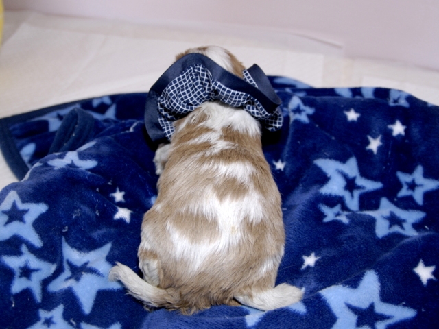 | コメント | お父さんはJKCチャンピオンの吉宗君、お母さんはチャンピオン直子リンダちゃんから生まれたダンディな男の子です。(紺リボン君) 健康状態は、問題有りません。 すくすく育っています。 |