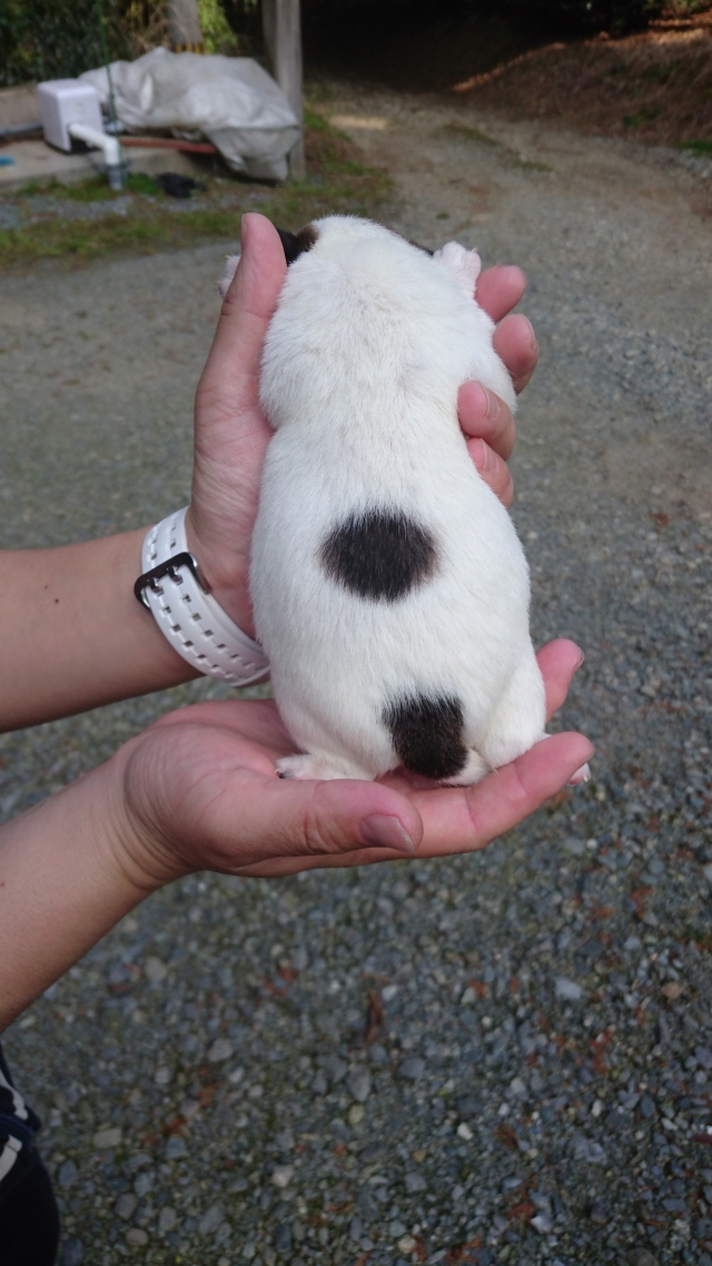 初めて問い合わせした時からとても親切で、見学に行った際もたくさんの事を教えてくだいました! 松川さんの人柄の良さと可愛い子犬ちゃんで私は即決でした^_^ お迎えに行くまでの間の期間も姉妹犬でのグループLINEを作って成長していく姿を写真や動画で送ってくださいました。会うまでの間を楽しく待てました。 譲っていただいたジャックラッセルテリアはラスクと名付けました。 おトイレをしつけて下さっていたおかげで、失敗はほとんどなく、お留守番もいい子にできるお利口さんです(^O^) 引渡し後も、たくさんの私の質問にアドバイスをくれたり、不安を和らげて頂き、とても感謝しています。 これからも、末長いお付き合いをして頂けたら嬉しいです。 この度は、本当にありがとうございました(^O^)(福岡県 女性)