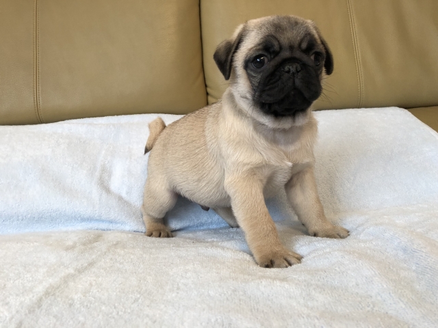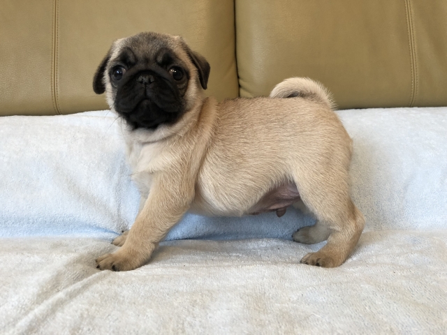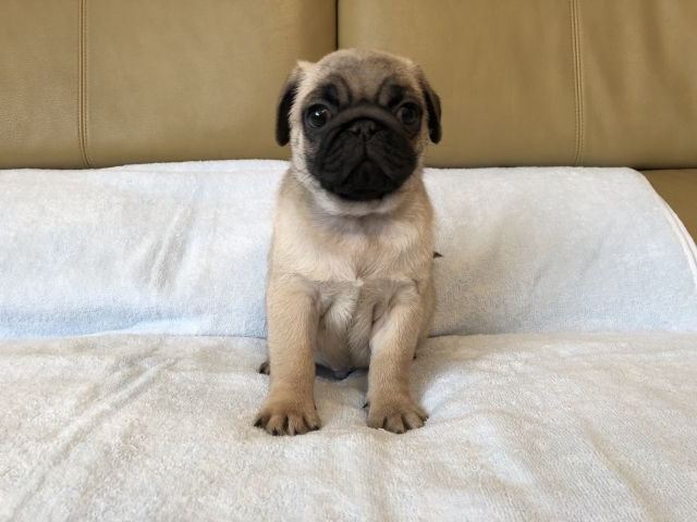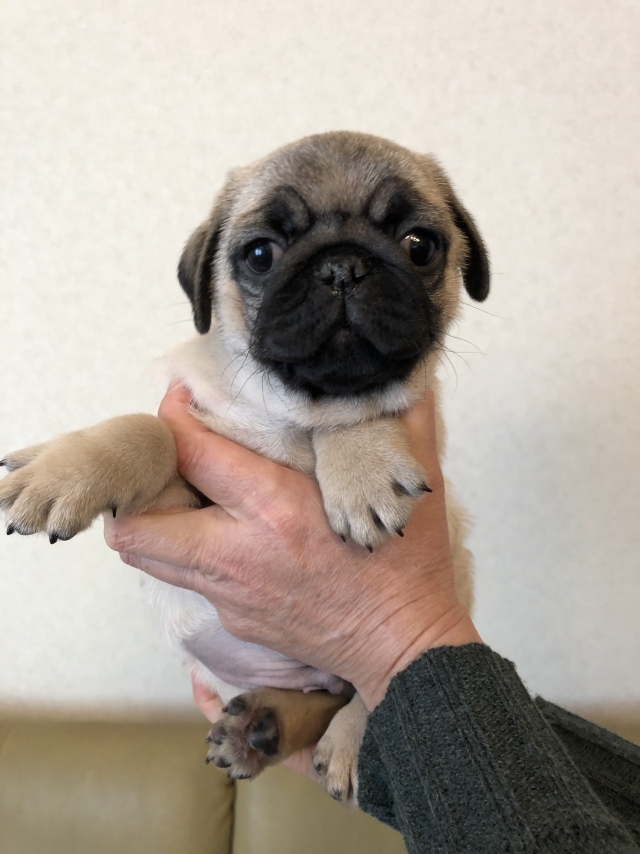 パグの飼育歴は30年以上になります。今年親の代から買っていた 黒パグを亡くしてから家を埋め尽くしているパググッズを見るたびに いつか新しい仔を迎えたいと思うようになりました。 北関東でブリーダーさんを探しているうちに木村様を知り、見学、購入の運びとなりました。 このたび性格も大変おおらかな素晴らしい仔犬をお譲りいただき大変感謝しております。 (茨城県 男性)