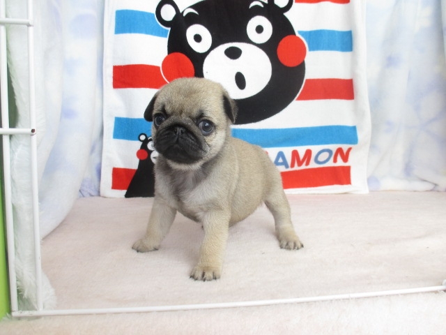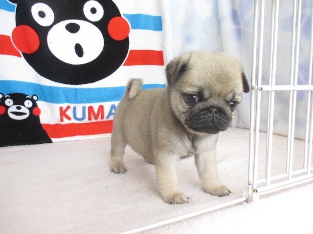 この度、ご縁がありましてパグちゃんを譲って頂きました。 空輸での移動の為、元気に届くかどうか心配しましたが、 手際よく家族として迎えることができました。 この仔をみてると角田ブリーダーによって愛情ゆたかに3ヶ月 育てられてきたことがよくわかります。 我々とともに1日でも長く一緒に居られるように、困った時や患った時にはこれからも、相談させていただこうと思っております。 本当に可愛い仔をありがとうございました。 (神奈川県 男性)