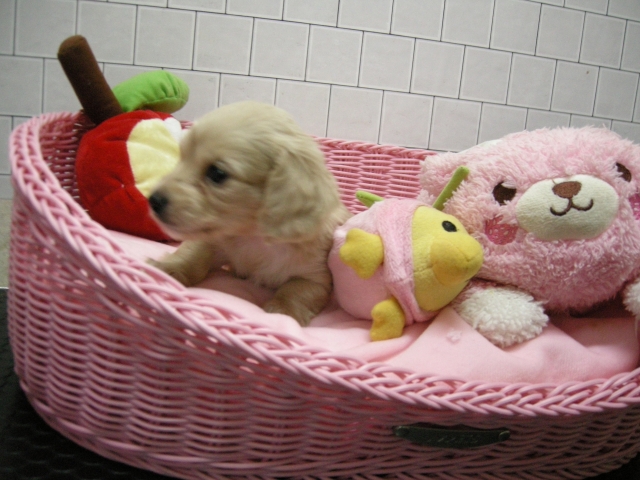 | コメント | お父さんクリームのイケメン君!しかもカニーヘンダックス!!しかもPRAクリアー!ちゃんと遺伝子検査しています! お母さんシェイテッドクリームの美人ちゃん! こんなに可愛いダックスはいませんよ!ダックスはかなり!自信ありです! 皆様からのお問い合わせ、ご見学お待ちしています! 大阪市 濱田 |