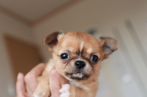 Breedersで一目惚れし、どうしても会いたくご連絡後お邪魔させていただきました。初めて仔犬に会った時には、あまりの可愛さに一瞬で虜になってしまいました。お父さん・お母さんチワワにも合わせていただき、静かな環境でゆっくりと仔犬と会うことが出来ました。小型犬を飼うのが初めてな自分に、色々と説明・体験談などお話して頂き大変勉強になりました。仔犬を迎えるまでに日にちがあったので、環境準備・心の準備ができ無事仔犬を迎えることが出来ました。いつでも気軽に、なんでもご相談くださいと言われとても心強く思いました。小さな可愛い家族が増え楽しい毎日をおくっております。この素敵な出会いが出来ましたことを心から感謝しております。(新潟県 男性)