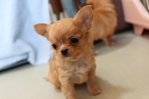 可愛過ぎる仔犬ちゃんに一目惚れし急だったのにも拘らず快くお邪魔させて頂きました。犬舎も大変綺麗でパパ犬ママ犬にも対面出来てブリーダー様のチワワちゃんに対する愛情をとても感じました。譲って頂いた仔犬ちゃんは自宅に到着後、先住犬が居ても物怖じする事無くフードをパリパリと食べトイレを外す事もなく出来元気に遊んで過ごしてました。可愛い仔犬ちゃんを譲って頂いて有難う御座いました。これからも時折成長過程を報告しますね。(静岡県 女性)