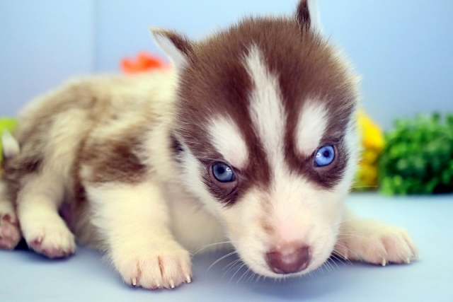 シベリアン・ハスキー チョコxホワイト ♂(男の子) 千葉県【 ブリーダーズ 】