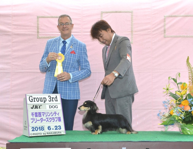 色々とご無理を言っても親切に対応して頂きました。ドッグショーなどで忙しいなかでも、返事をくださり大変ありがたく思います。やっと仔犬が家族の一員なりとても嬉しく思います。ダックスを購入されたい方おすすめしたいです。(兵庫県 男性)