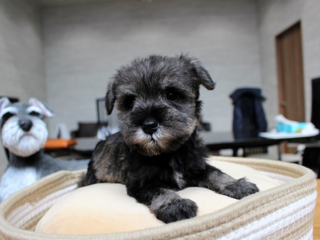 シュナウザーを主力にされているブリーダーさんだと認識しており、ボスちゃんはどうかなあと正直不安でしたがとても可愛く健康的なボスちゃんをいただきました。 掲載されていた写真より実物は想像以上に可愛くて即決し見学させていただいたその日に連れて帰りました。連絡をして、翌日行きますぅって勝手な申し出にも関わらず敏速かつ親切に対応して頂き大満足です。契約に対しても一つ一つ丁寧に説明してくださり、わかりやすかったです。この度は可愛いボスちゃんとのご縁をいただき、本当に有り難うございました。 (大阪府 女性)