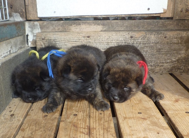 | コメント | 父は色素の濃い中虎毛。 非常にフレンドリーで、この系統は展覧会でも大活躍。 母はフレンドリーな赤虎毛です。 この系統は小振りです。成犬時12kg程度でしょう。 小振りですが運動能力は抜群で、敏捷です。 しっかりした気性は内に秘め、フレンドリーで咬み癖はありません。 甲斐犬と言えば「咬む」と言う人が多いですが、 代々の好ましい性格の組み合わせから本当に驚く程のフレンドリーな仔が 誕生しています。 ご覧になって甲斐犬のイメージが変わりますよ!! 当方、営利での繁殖で無く、保存と普及を目的にしております。その関係から、 飼育頭数も少なく、常時仔犬が居るわけではありません。 犬舎も住まいと同じ敷地内で、閑静な住宅街にあり、騒音防止には気を遣わざるを得ない環境にあり、家族の体調面もありまして、誠に勝手で恐縮ですが、ご見学はサイトに掲載中の仔犬の飼育をご希望の方のみに限らせて頂きます。 ご理解のほどよろしくお願い申し上げます。 |