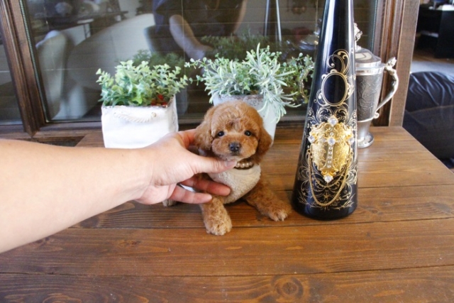 本日、我が家に小さな可愛い女の子のトイプードルがやって来ました。 遠距離という事もあり、暑い時期、飛行機の事なども心配していましだが、家に着いた途端、元気に走り、食欲も旺盛で、今まで大切に育てられてきたのだなぁ、ということがよくわかりました。 連休中にも関わらず、戸田様には、伊丹空港まで連れて来て頂き、こちらの質問にも的確に答えて下さいました。 大変信頼できるブリーダーです。 遠距離で悩まれている方も、安心して新しい家族を迎えられますよ。(兵庫県 男性)