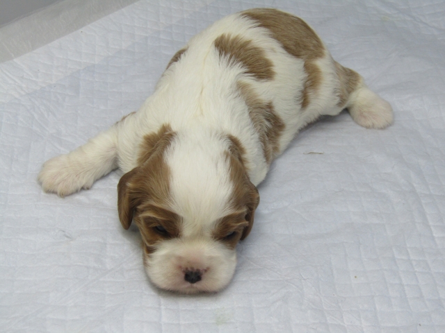 | コメント | 両親ともブレンハイムから生まれたブレンハイムの女の子です。 前回より顔立ちがはっきりしてきました。 とてもかわいい顔をした女の子です。 まだ生後22,3日なので性格などは分かりませんが これからドンドンかわいくなり個性が出てきます。 お乳もよく飲み、離乳食も少しづつですが食べてくれるようになりました。 これからの成長がとても楽しみです。 見学はいつでもできますのでお問合せください。 |