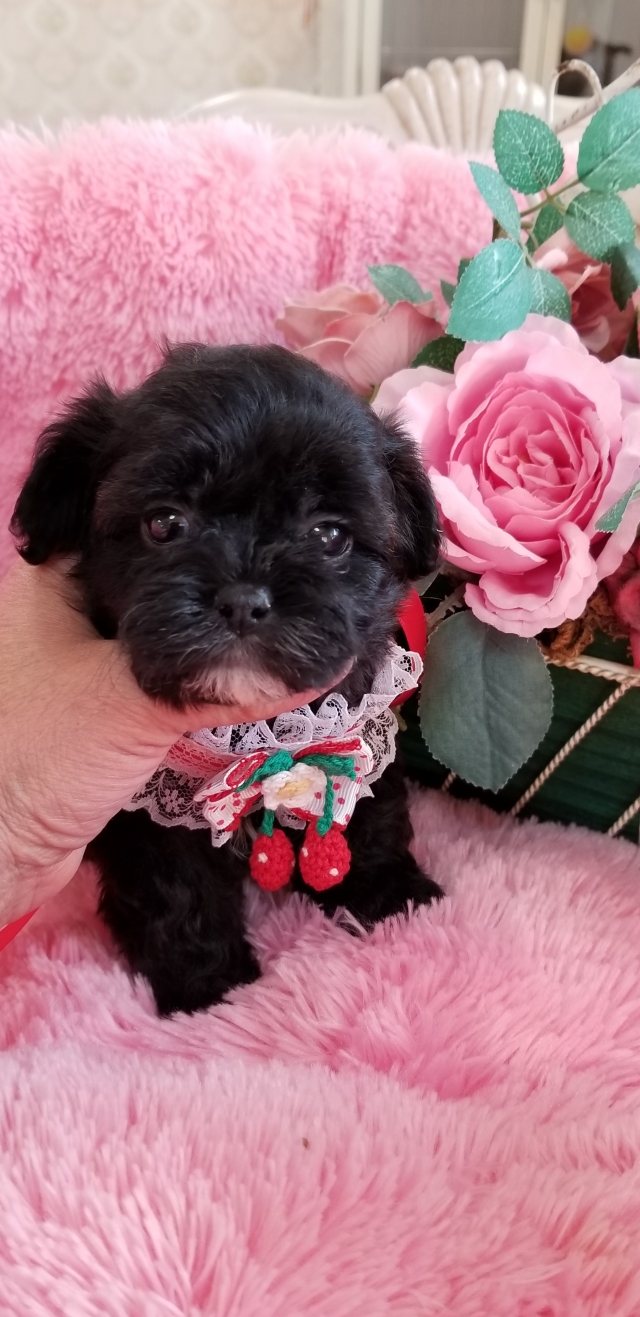 | コメント | 父親 チワワ チョコタン 母親 シーズー 優しい両親から小さな女の子がうまれました。 コロコロして、歩き方が熊さんみたいで可愛いですよ。 成犬時の体重予想 2.5kg~3kg 是非家族の一員にお迎えくださいませ? 宜しくお願い致しますm(。_。)m |