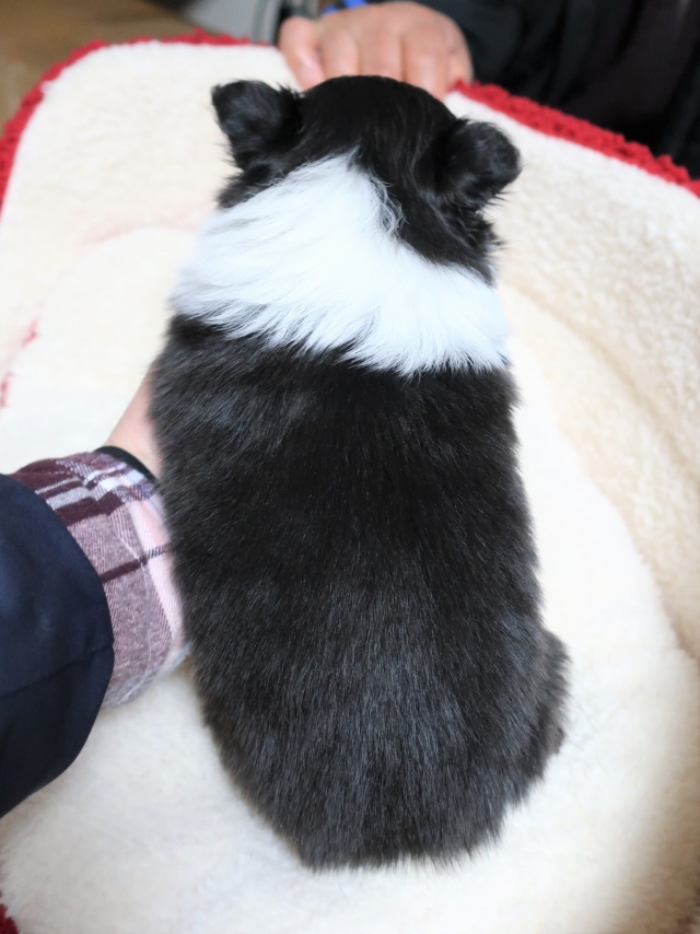 ネットブリーダーズを拝見し、バイブルーで青い目の子犬「銀くん」に一目ぼれしました。また、平山ブリーダー様の口コミがとても良かったこともあり、不安なく連絡をさせていただきました。お問い合わせ後すぐに丁寧な返信をいただき、見学の日程もスムーズに決まりました。 実際に伺うと、かわいいたくさんのシェルティちゃん達に迎えられ、たくさんの質問にも丁寧に答えてくださり、大変安心しました。お迎えした銀くんは、最初の1日はおとなしく心配になるほどでしたが、2日目からは甘えたり鳴いたりと元気を取り戻し、とても可愛い姿を見せてくれています。 平山ブリーダー様の元で大切に育てられてきたことがよく分かり、銀くんをお迎えできて心から良かったと思っています。 素敵なご縁をありがとうございました。(福島県 女性)